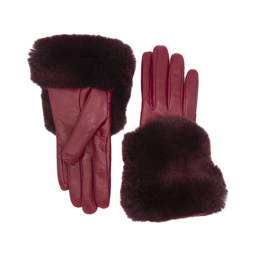 Women's bordeaux nappa leather gloves with natural fur