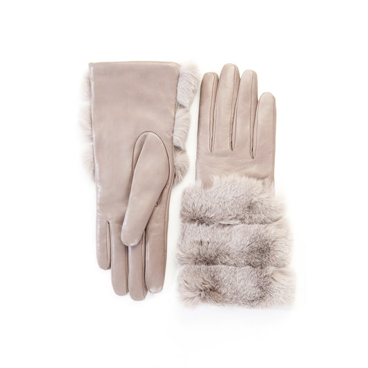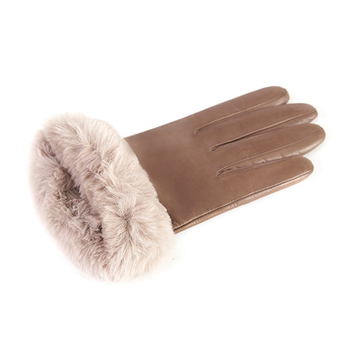 Women's taupe nappa leather gloves with faux fur