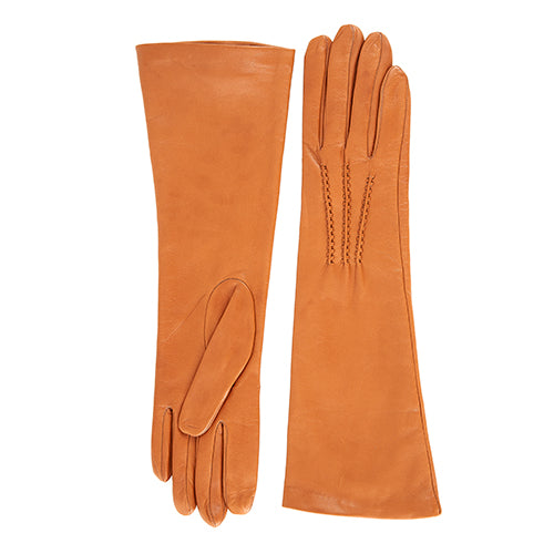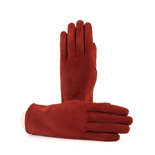 Guanti da donna classici in pelle suede colore tabacco con apertura sottomano e foderati cashmere
