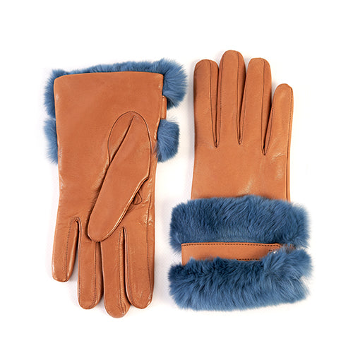 Guanti da donna in nappa con polsino in pelliccia naturale, fodera in cashmere