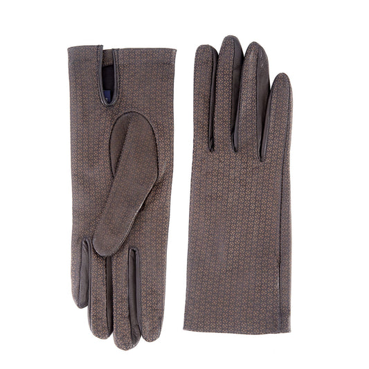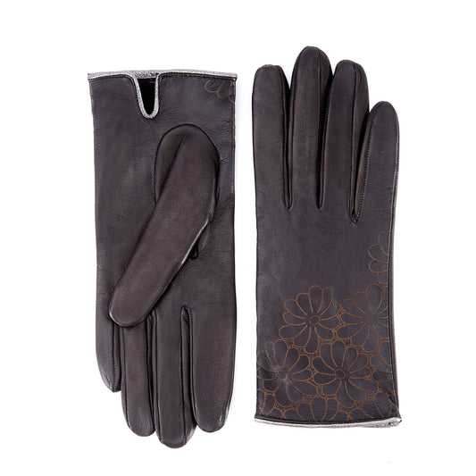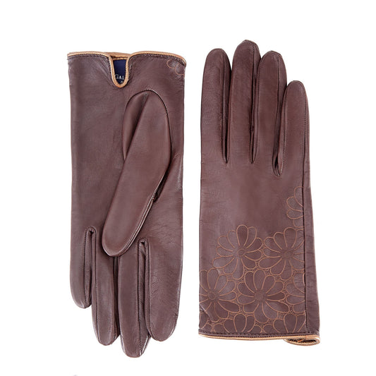 Guanti da donna sfoderati in nappa colore marrone e con dettaglio floreale