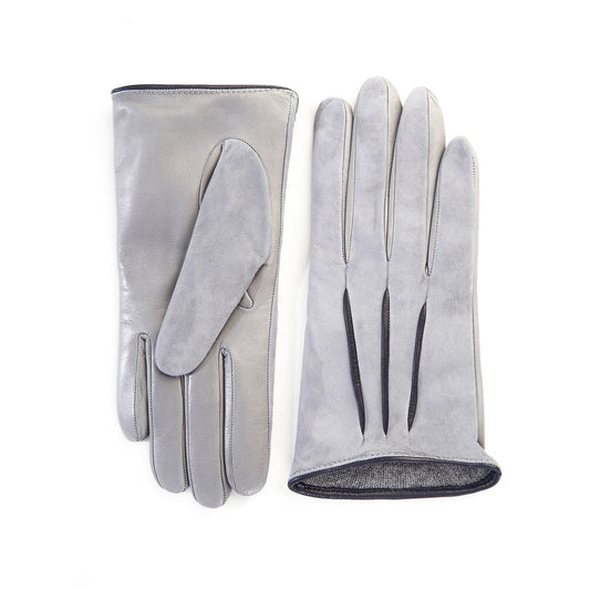Guanti da donna in pelle nappa e suede colore grigio foderati in cashmere