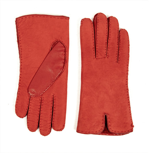 Guanti da donna in shearling colore rosso con dettaglio bordino in nappa