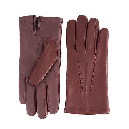 Guanti da uomo "Curniciello" in pelle nappa color marrone con dettagli in rosso e fodera in cashmere