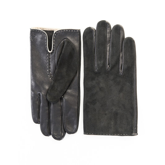 Guanti da uomo di pelle nappa e suede nero con cuciture a mano foderato seta