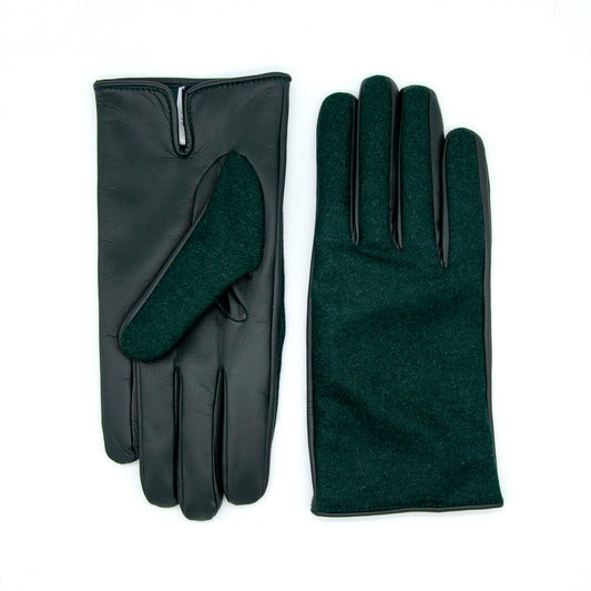 Guanti da uomo in pelle nappa touch colore verde con dorso in lana Holland&Sherry