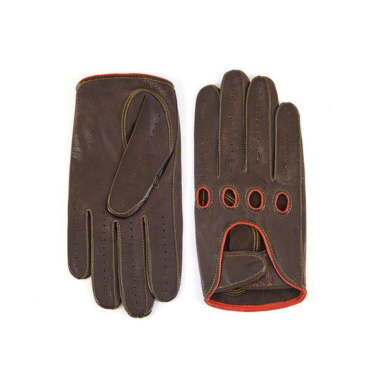 Guanti da uomo da guida in nappa colore marrone con chiusura con velcro