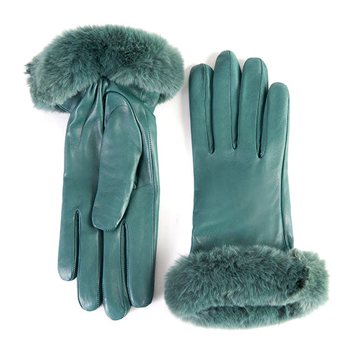 Guanti da donna in pelle nappa colore teal con pelliccia finta