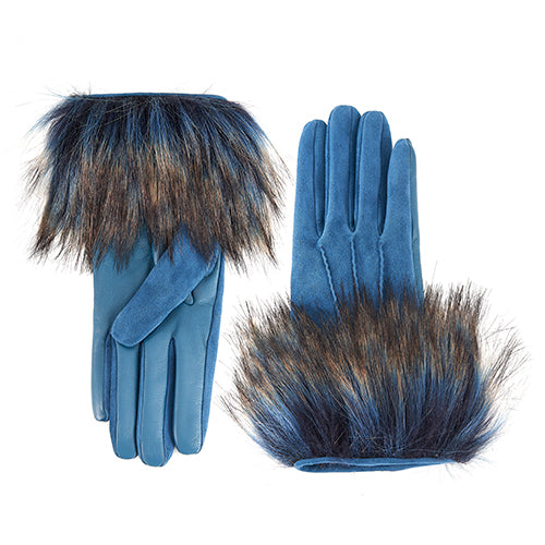 Guanti da donna in pelle suede e palmo touch con polsino in pelliccia eco