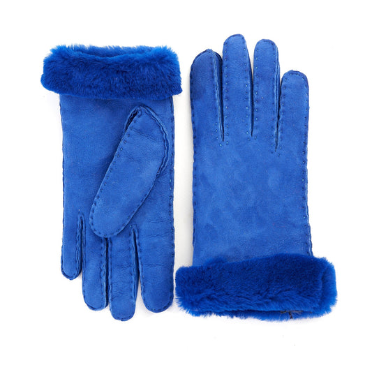 Guanti da donna in pelle nappa colore blu con dorso di tessuto in lana Vitale Barberis Canonico