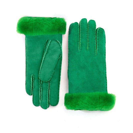 Guanti da donna in pelle suede colore giada 6 BT e foderati cashmere