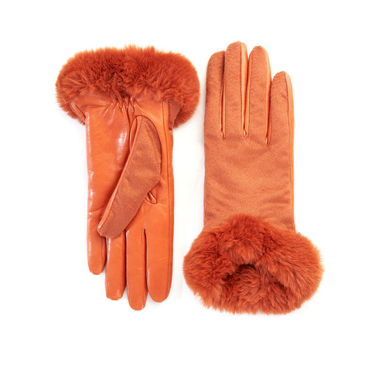 Guanti da donna in pelle nappa e puro cashmere Holland&Sherry color arancio e con pelliccia ecologica