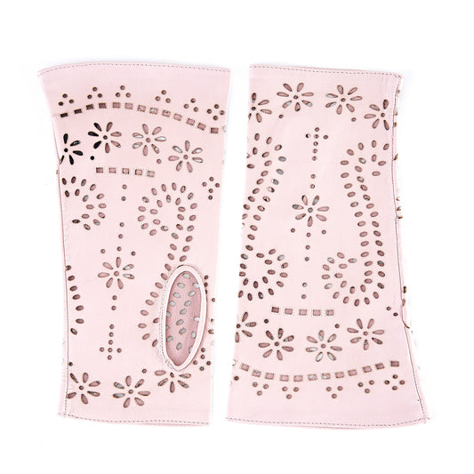 Manicotto donna di nappa color rosa sfoderato e laserato