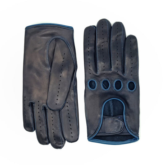 Guanti da uomo da guida in nappa colore blu con chiusura con velcro