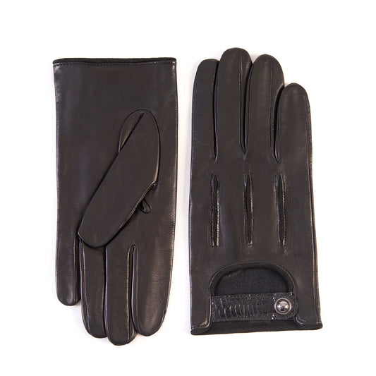 Guanti da uomo in nappa colore nero e dettagli in suede con cinturino e fodera in seta