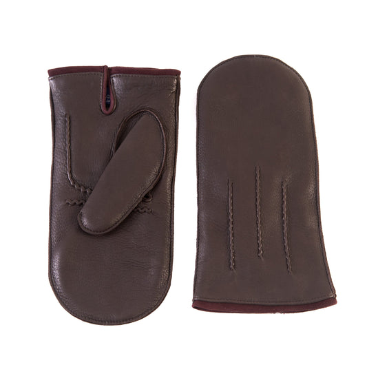 Muffola da uomo in pelle cervo colore marrone con bordino in suede e fodera in cashmere