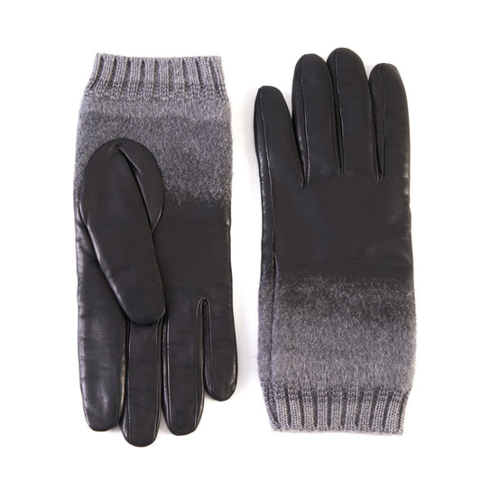 Guanti da uomo in pelle nappa colore nero con polso di lana intrecciata
