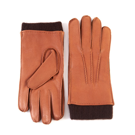 Guanto da uomo in cervo color soft brick con polsino marrone e foderati cashmere