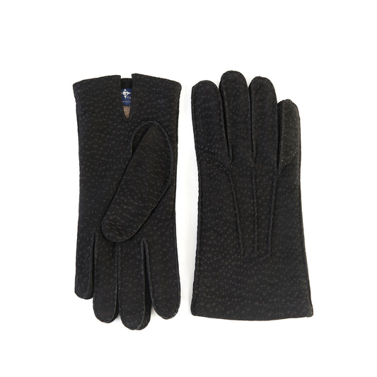 Guanti da uomo in pelle di carpincho colore nero cuciti a mano foderati cashmere