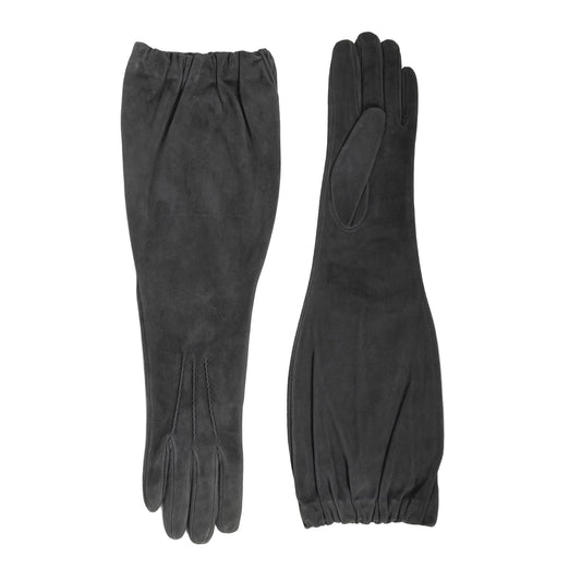 Guanti da donna in pelle suede di media lunghezza, foderati in seta