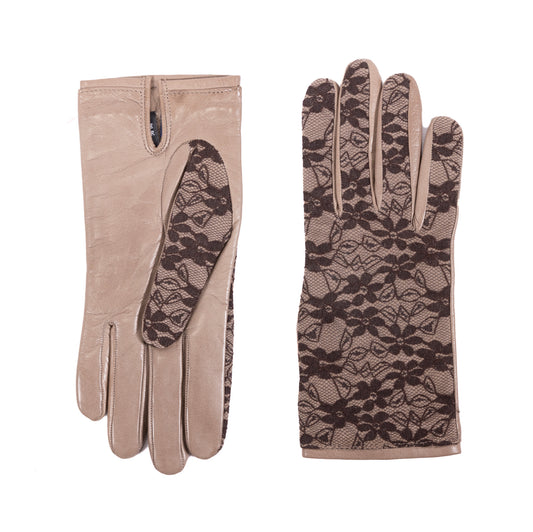 Guanti da donna in nappa con elegante dettaglio in pizzo sul dorso, fodera in cashmere