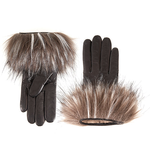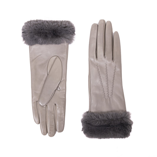 Guanti da donna in nappa con polsino in pelliccia sintetica, fodera in misto cashmere