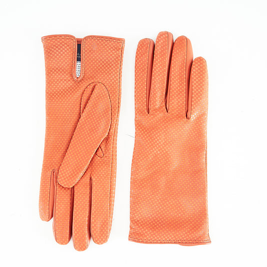 Guanti da donna in pelle nappa damascata colore arancione foderati cashmere