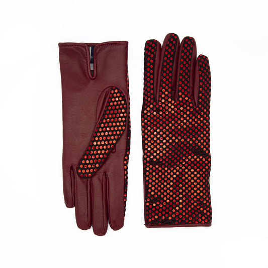 Guanti da donna in pelle nappa con dorso in suede a pois