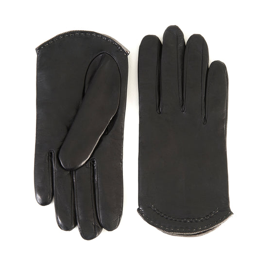 Guanti da donna in pelle nappa colore nero con bordino in pelle laminata foderati seta