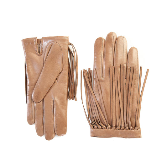 Guanti da donna con frange in nappa colore alpaca foderati cashmere