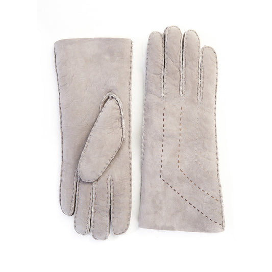 Guanti donna di montone grigio chiaro con impunture tricolor sul dorso