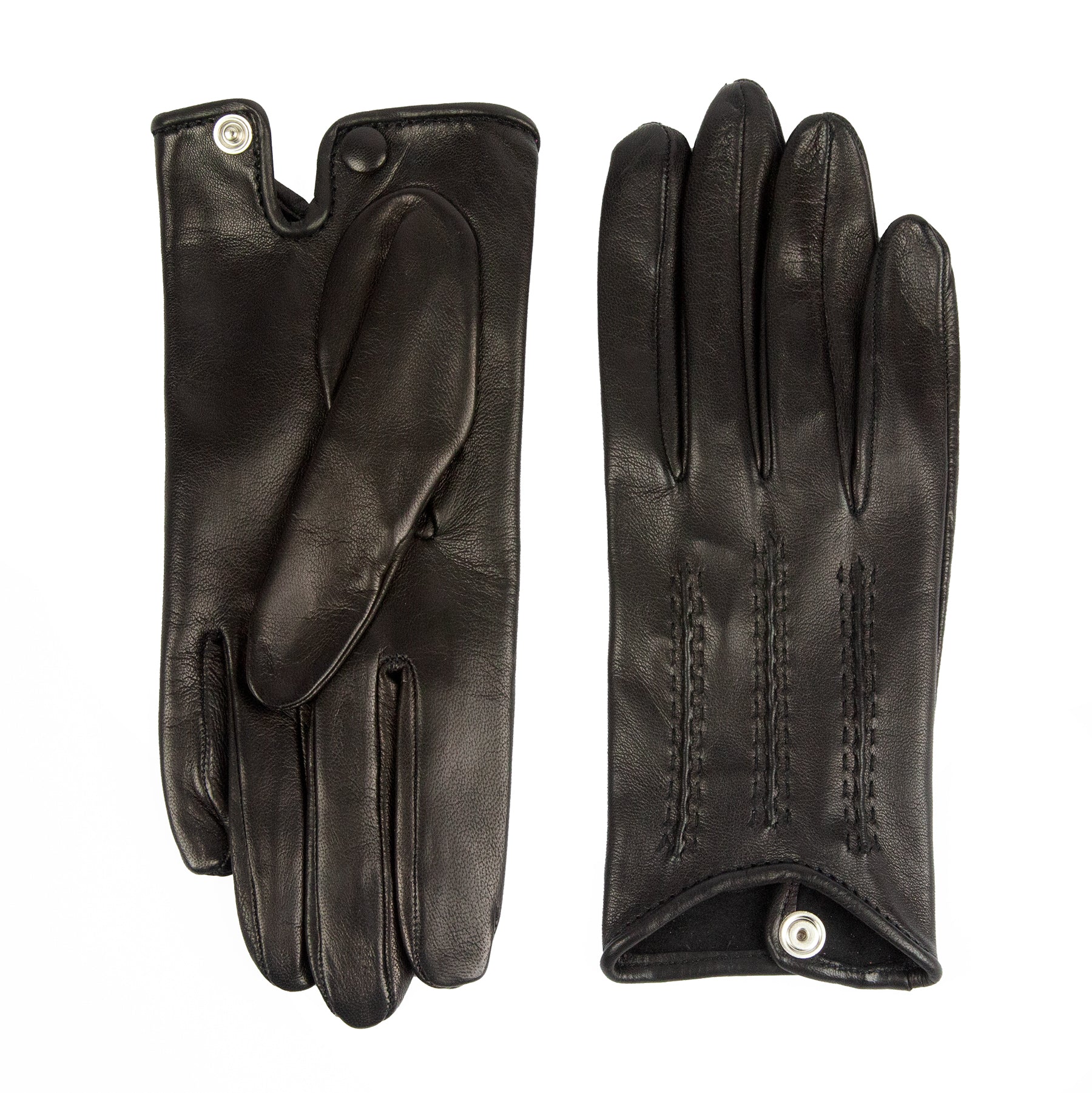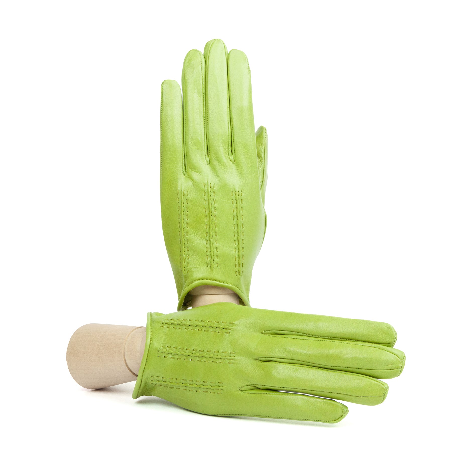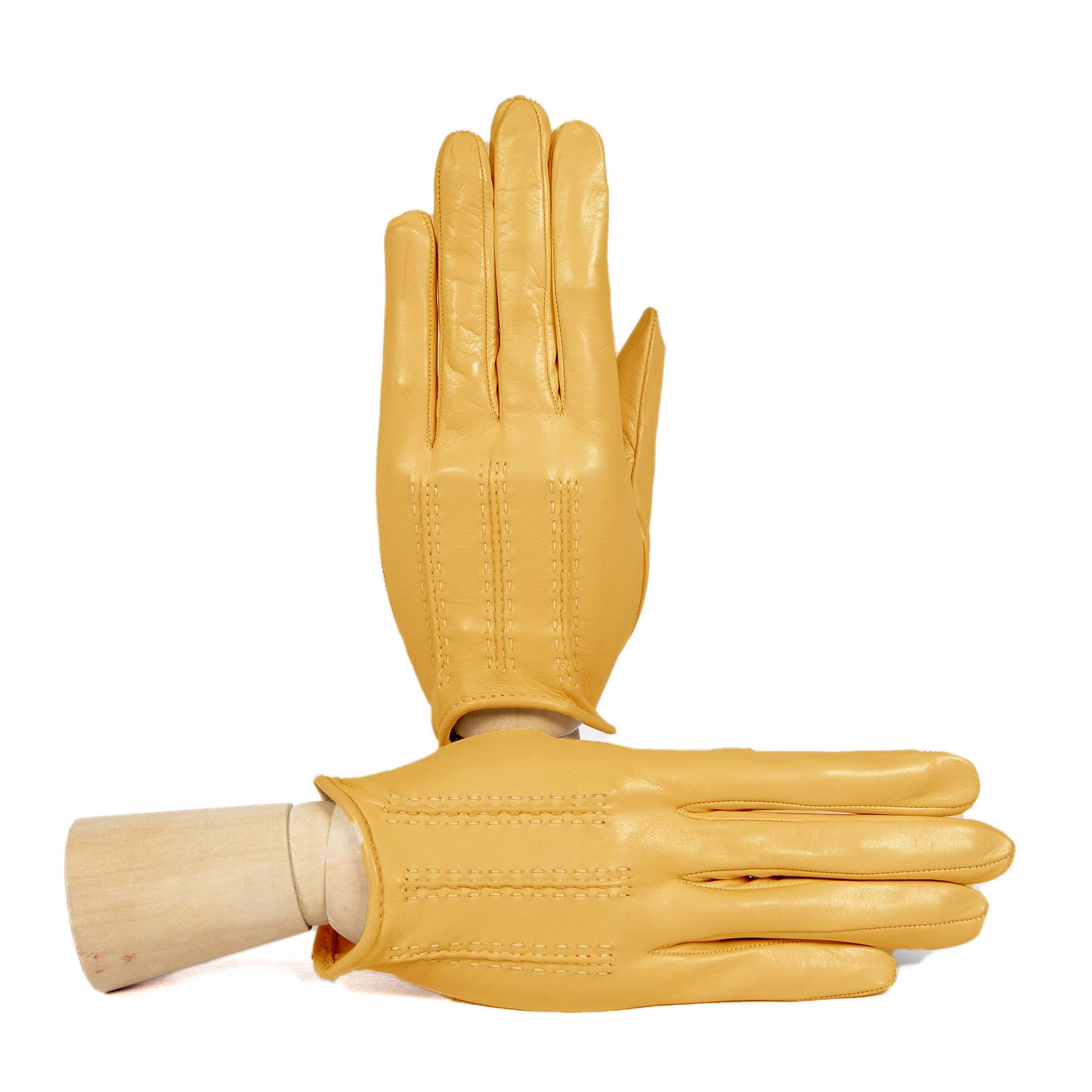 Guanti sfoderati in nappa morbida con una piccola vaschetta sul dorso e chiusura a bottone che lo rende aderente alla mano. Ideali per le fresche giornate primaverili. I cordoni fatti a mano sono la testimonianza del know-how tradizionale dei nostri artigiani.