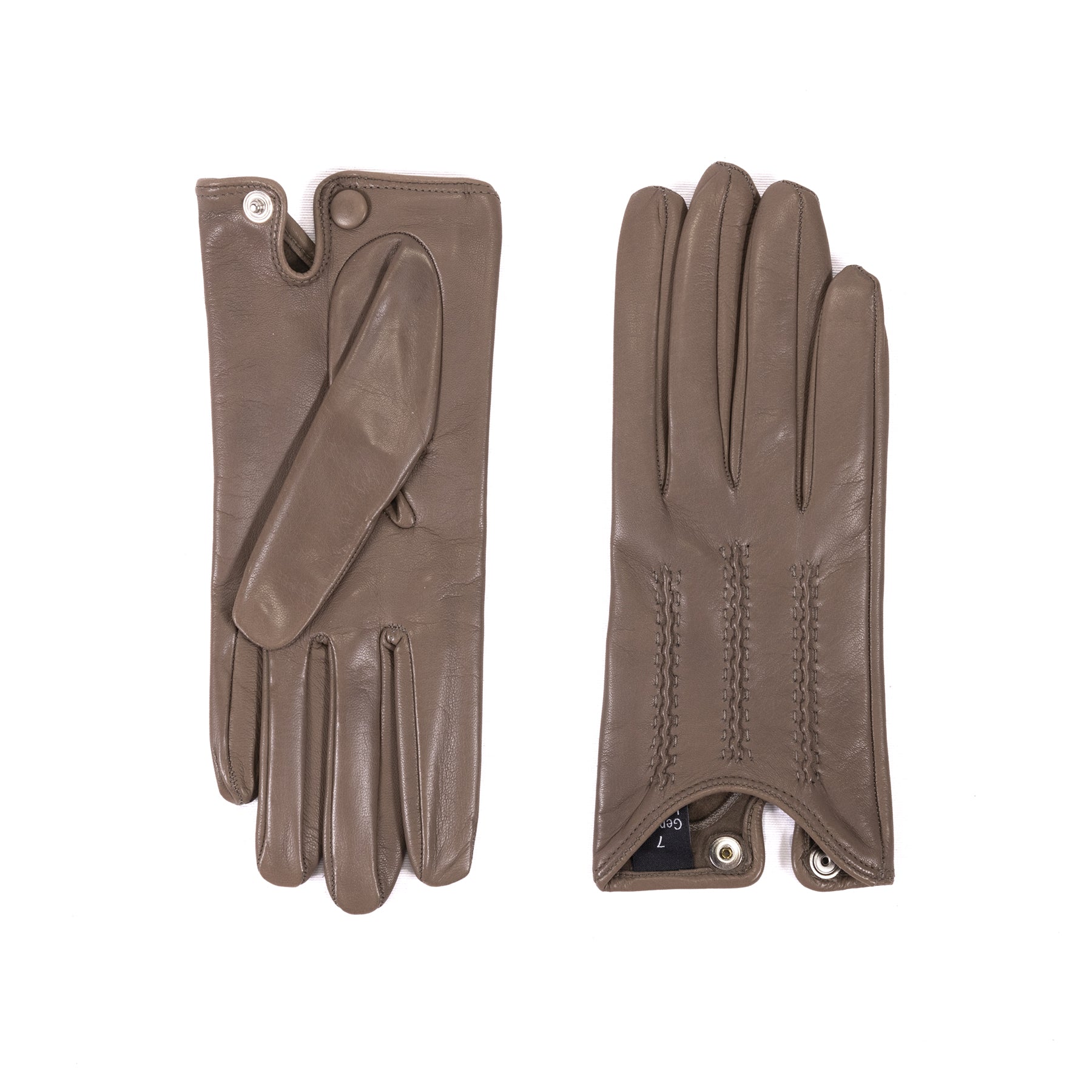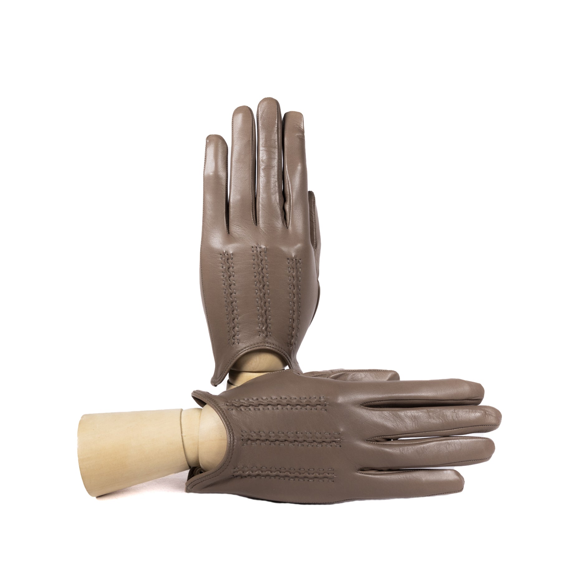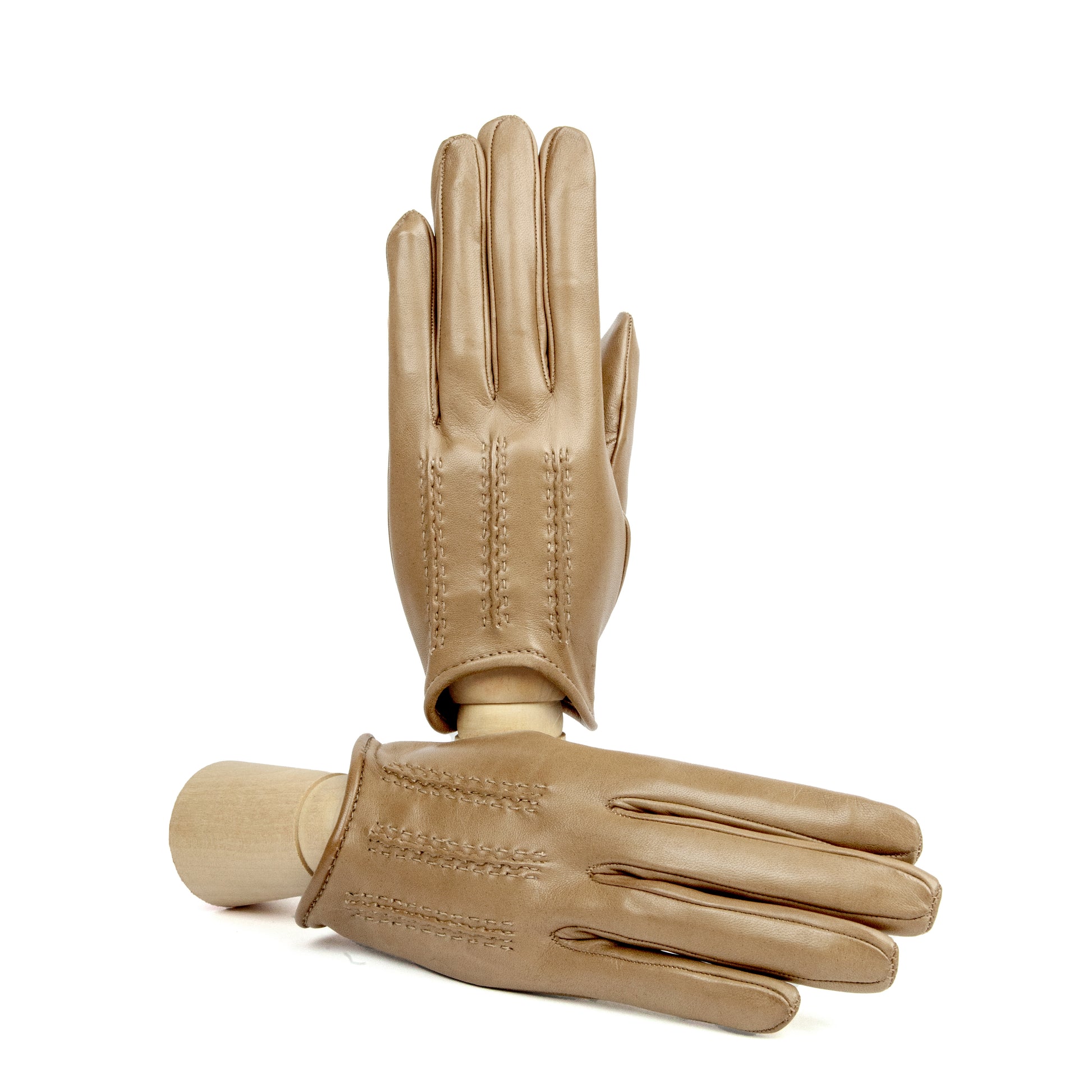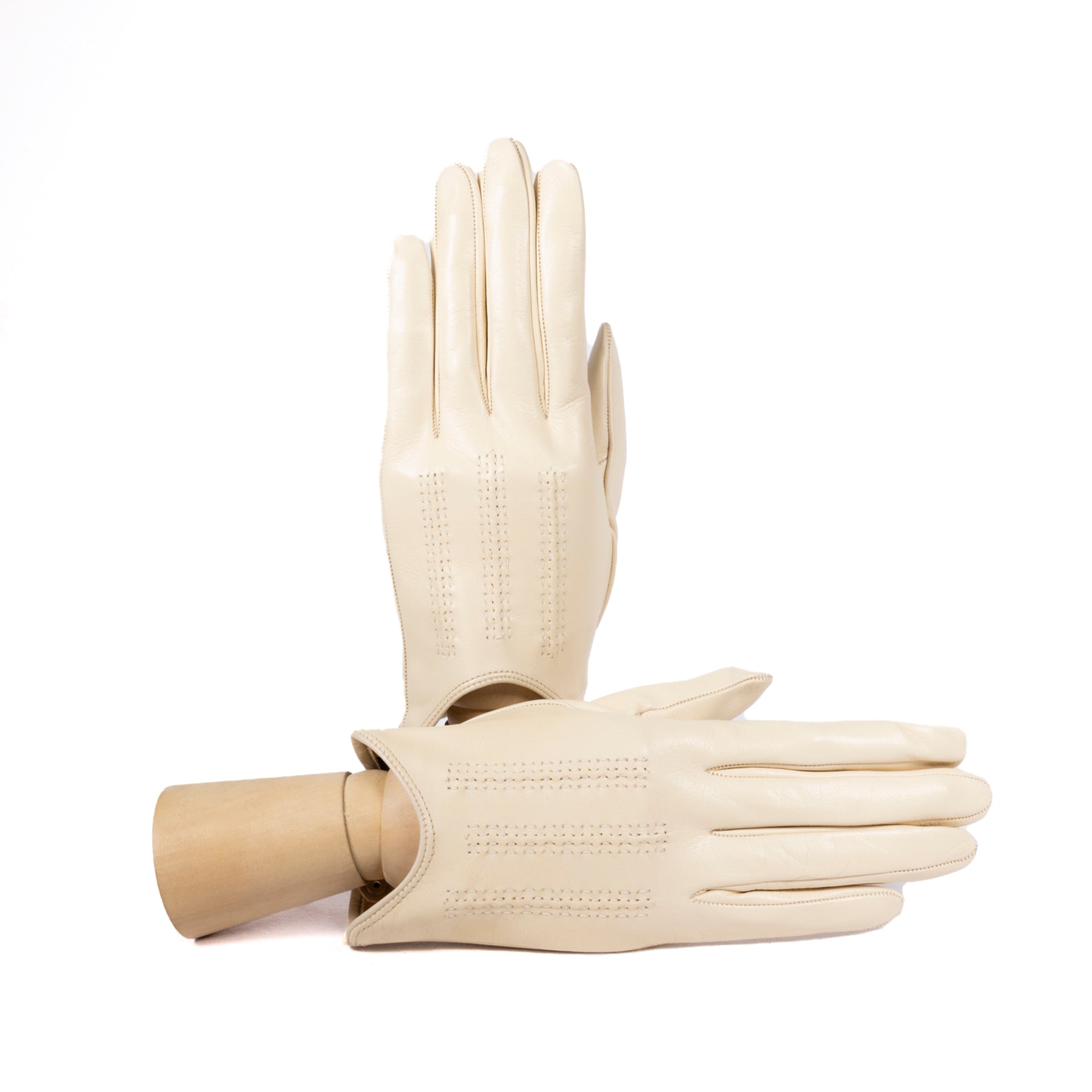 Guanti sfoderati in nappa morbida con una piccola vaschetta sul dorso e chiusura a bottone che lo rende aderente alla mano. Ideali per le fresche giornate primaverili. I cordoni fatti a mano sono la testimonianza del know-how tradizionale dei nostri artigiani.
