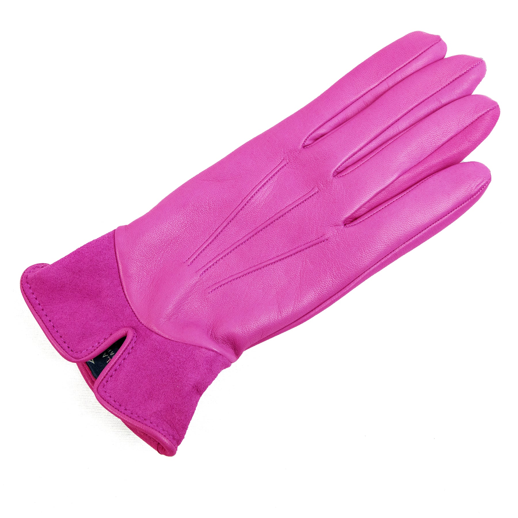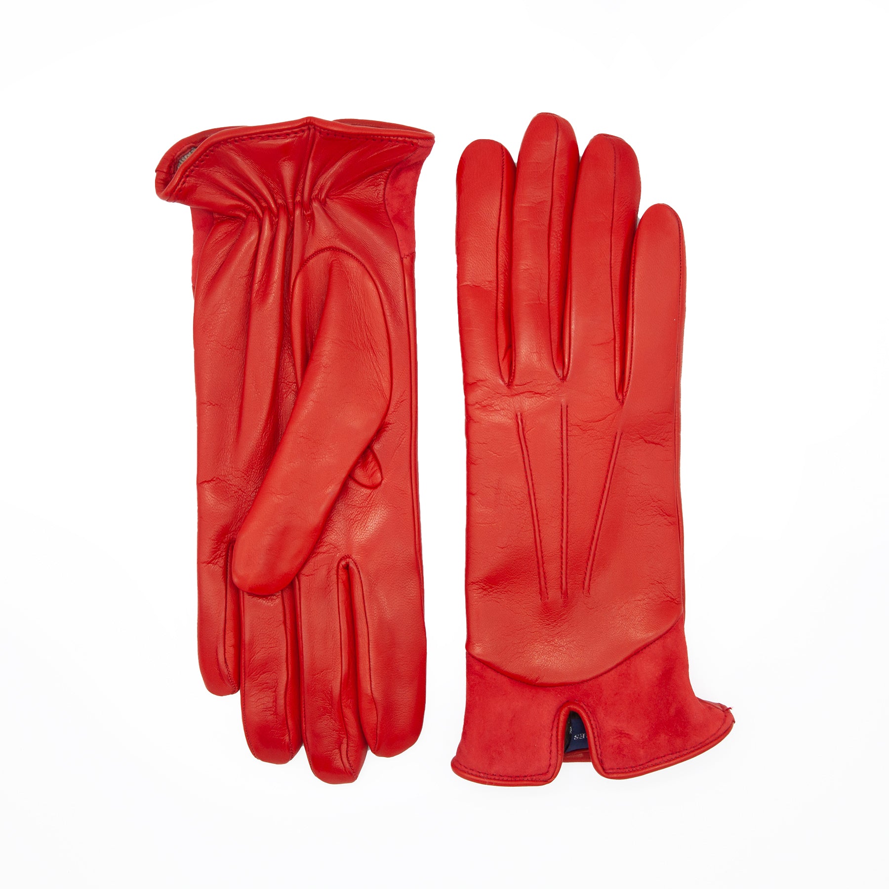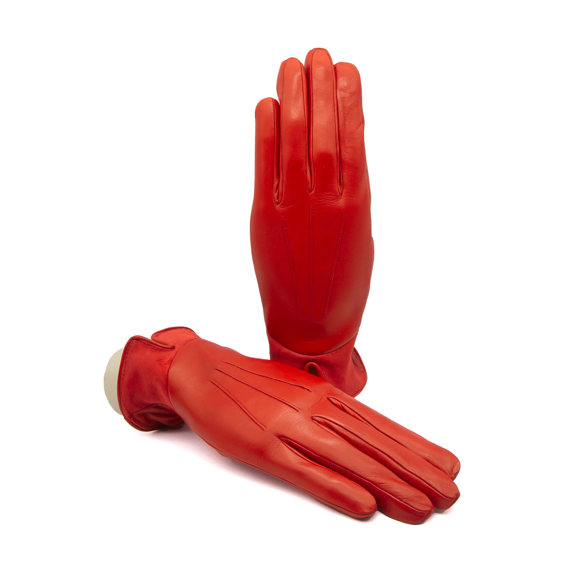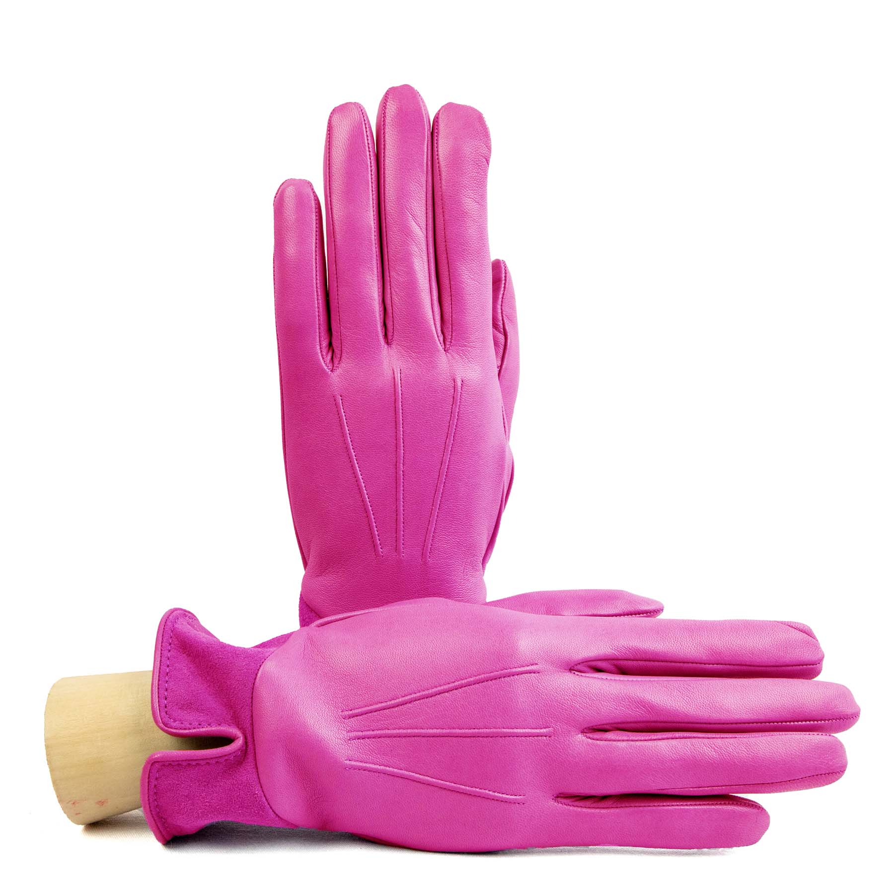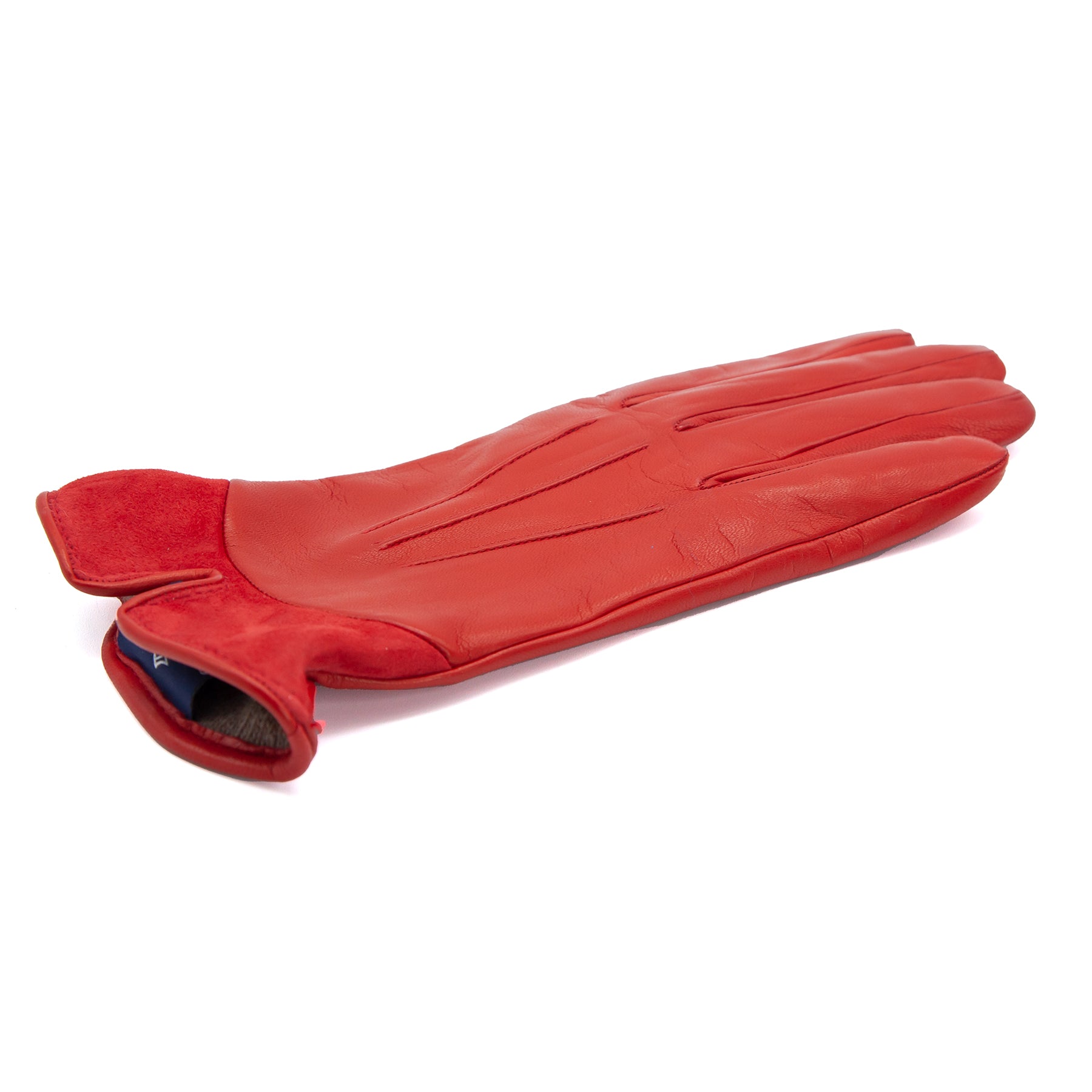 Guanti da donna in nappa con inserto in suede sul dorso e foderati cashmere