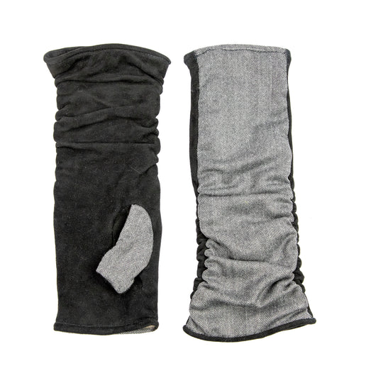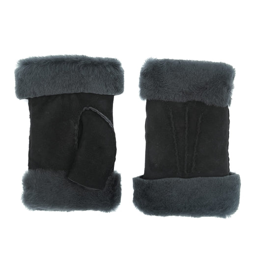 Women's fingerless black suede leather gloves with Vitale Barberis Canonico wool top