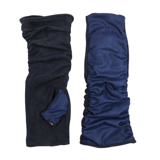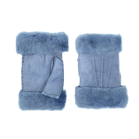 Women's fingerless blue suede leather gloves with Vitale Barberis Canonico wool top