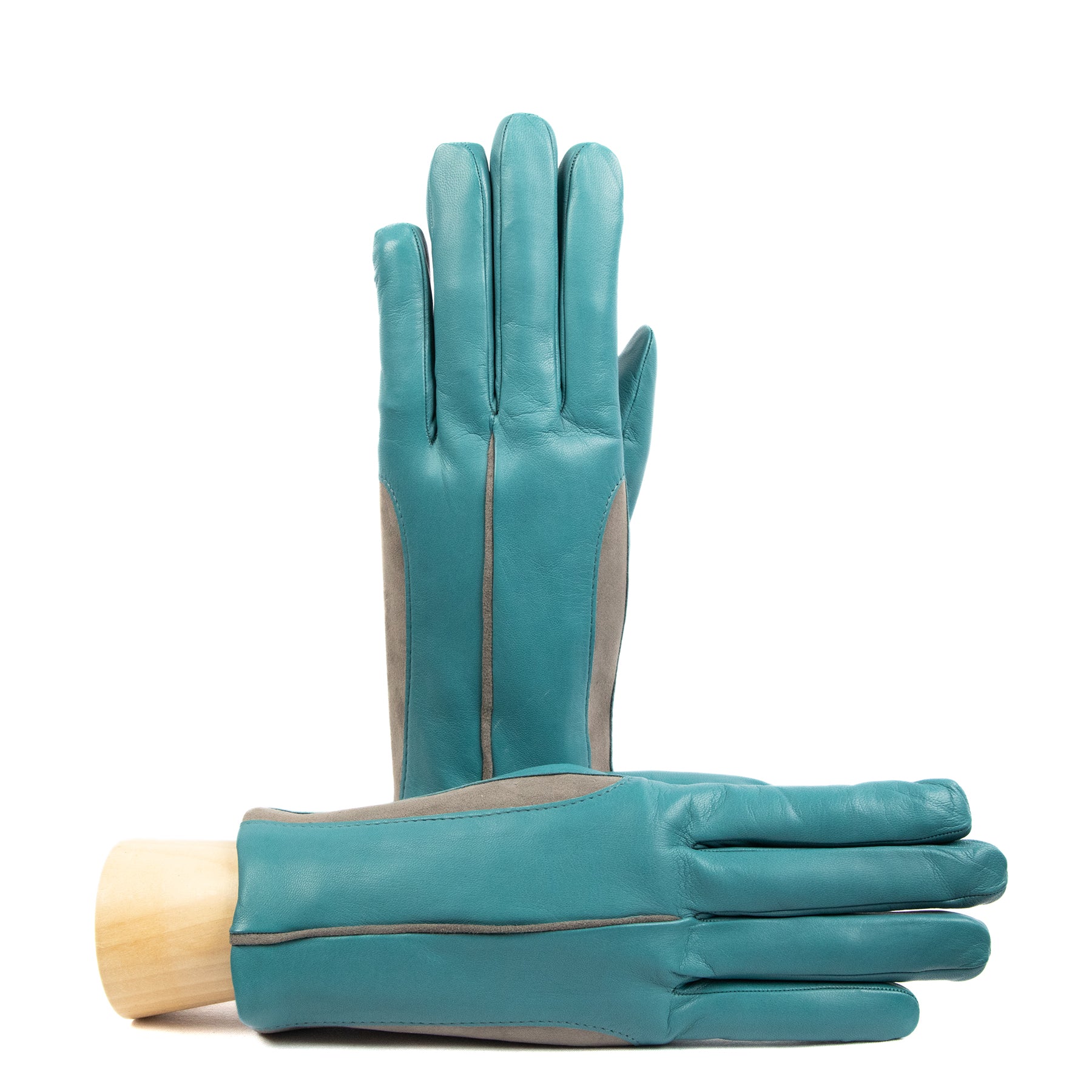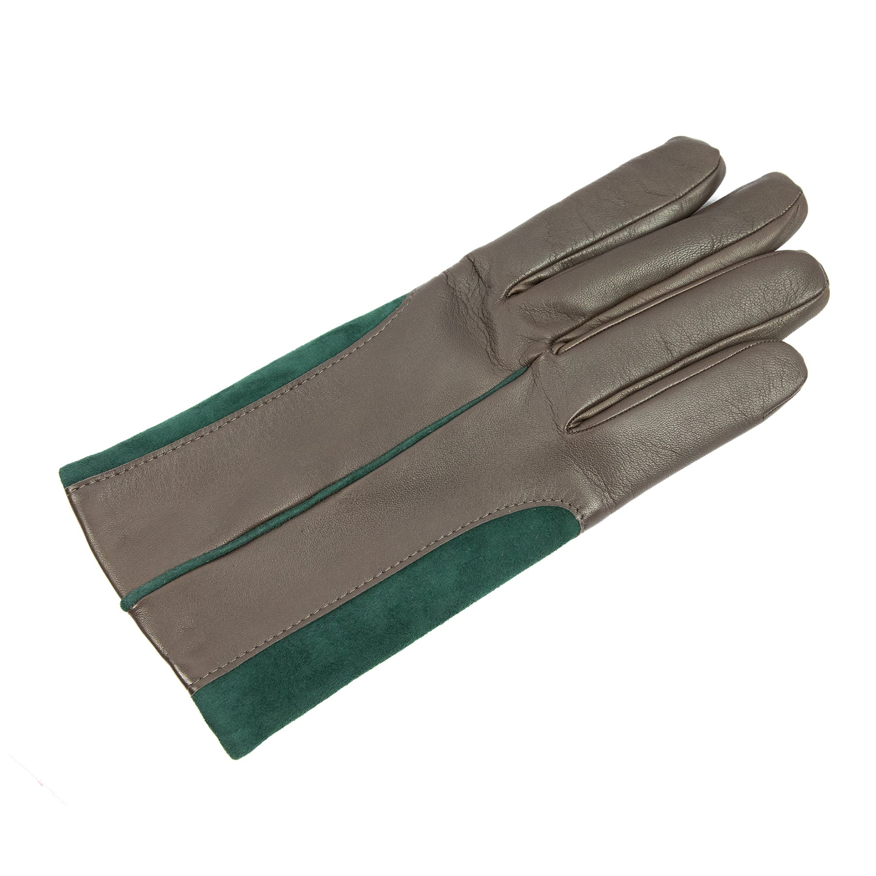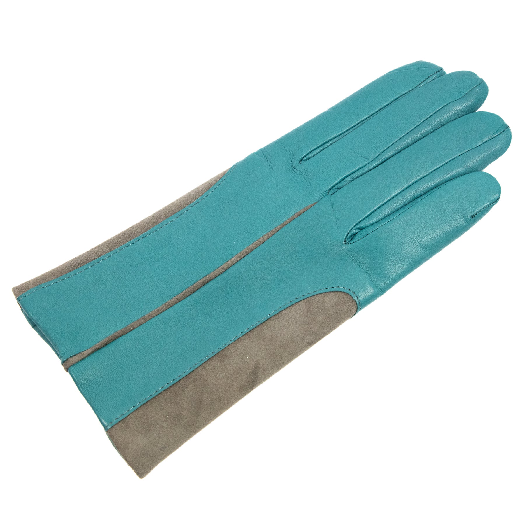 This exquisite glove is crafted from soft nappa leather, matched with contrasting inserts of stretch suede, creating a dynamic play of textures and colors. The interior is lined with a luxurious cashmere blend, ensuring both warmth and comfort. The thoughtful combination of materials and the bold color contrasts make this glove an irresistible choice for those who love to stay ahead of fashion trends, even in the world of accessories. A perfect blend of sophistication and contemporary flair, it’s designed to be as stylish as it is functional.