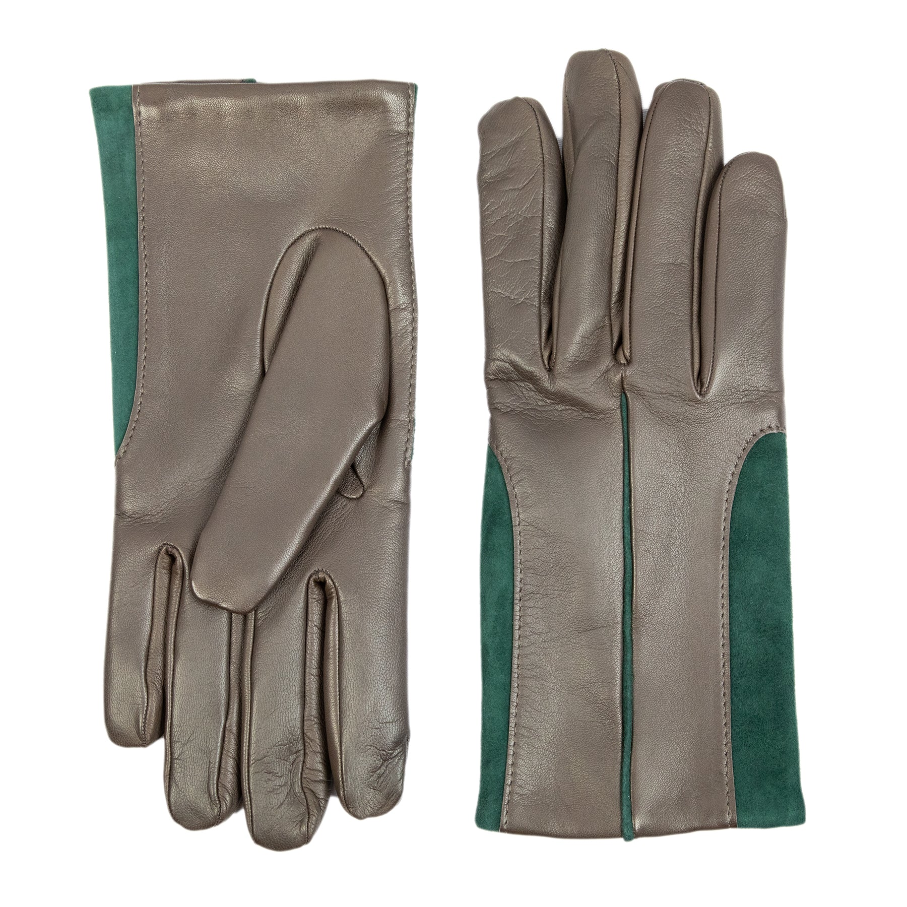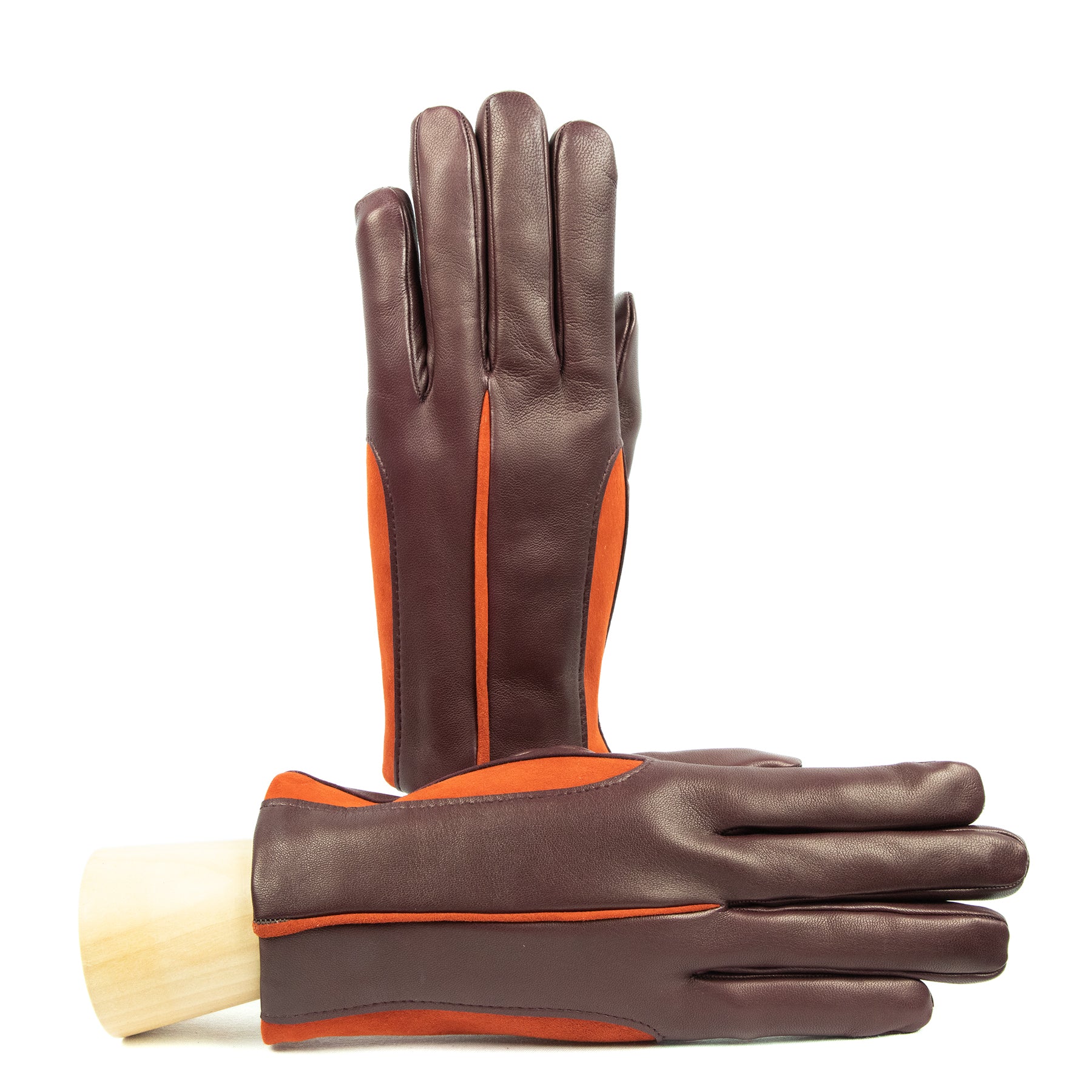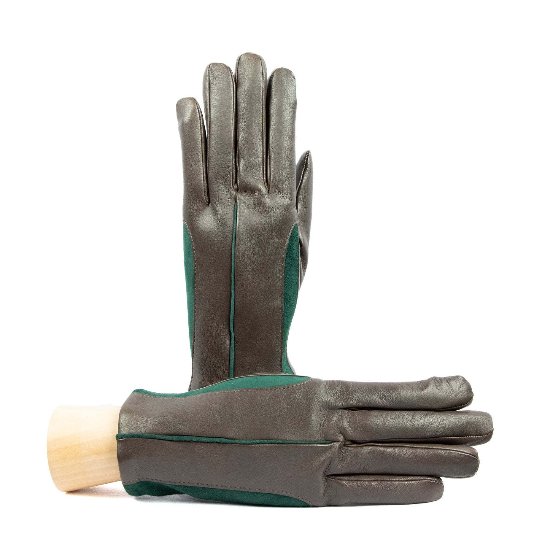 This exquisite glove is crafted from soft nappa leather, matched with contrasting inserts of stretch suede, creating a dynamic play of textures and colors. The interior is lined with a luxurious cashmere blend, ensuring both warmth and comfort. The thoughtful combination of materials and the bold color contrasts make this glove an irresistible choice for those who love to stay ahead of fashion trends, even in the world of accessories. A perfect blend of sophistication and contemporary flair, it’s designed to be as stylish as it is functional.