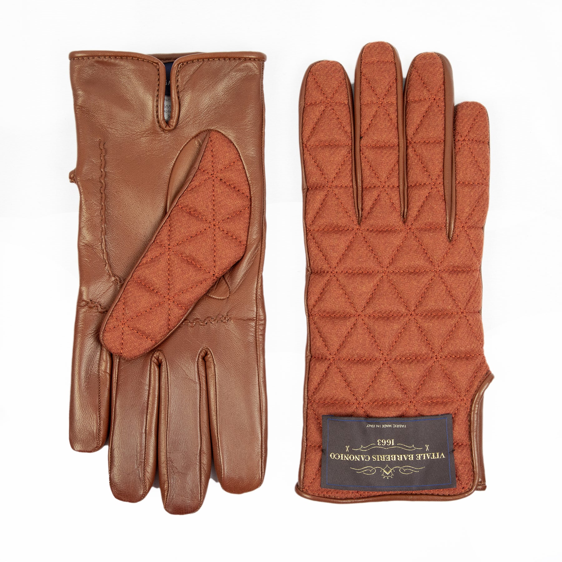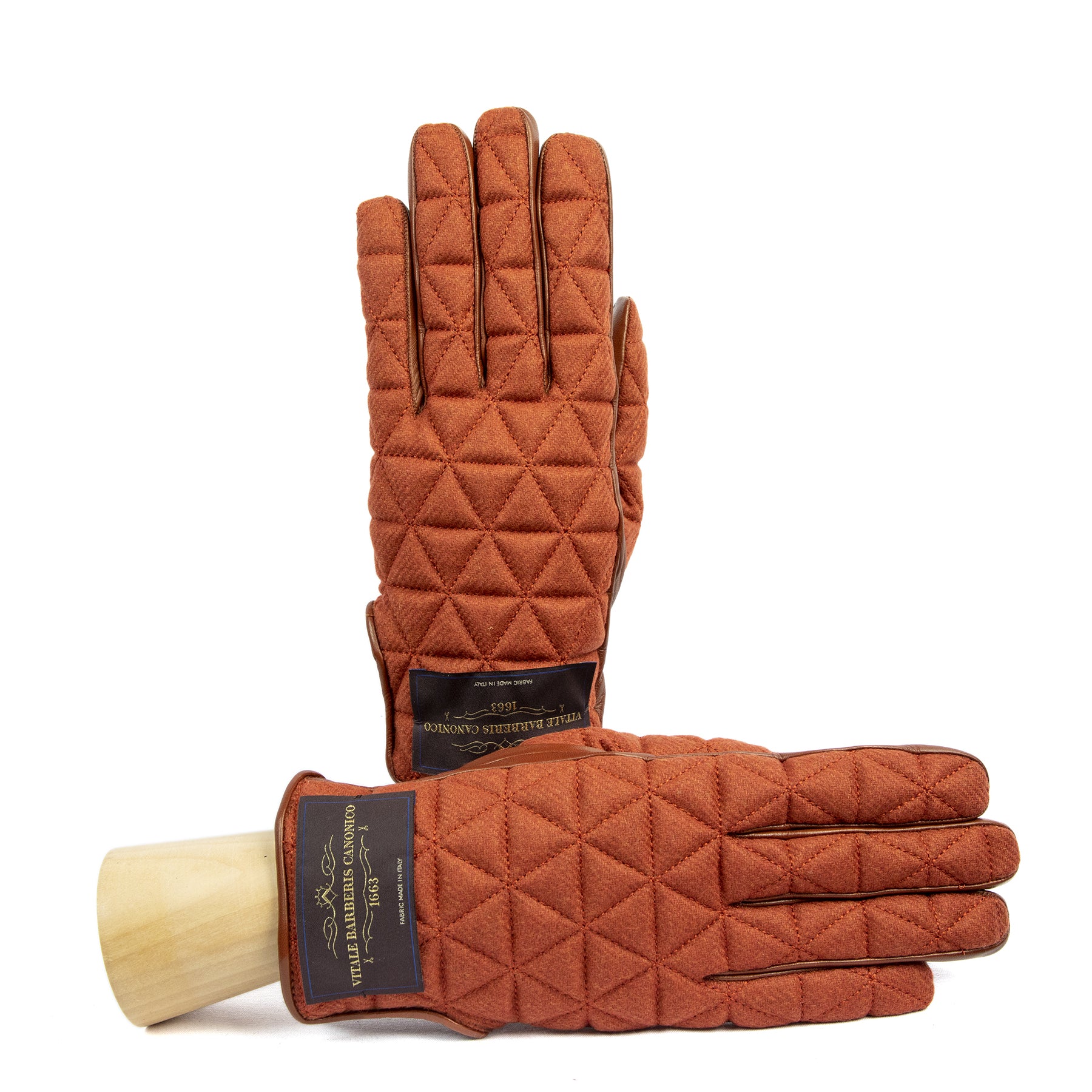 A distinctive glove for those who refuse to go unnoticed. The back features an elegant quilted design with triangular patterns crafted from the exquisite cashmere fabric by Vitale Barberis Canonico, while the palm is made of soft nappa leather, enriched with a hand-quilted cord detail. A true luxury accessory, meticulously crafted with attention to every detail for those who appreciate high-quality artisanal gloves.